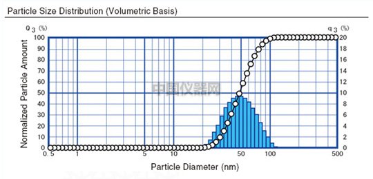 圖二 粒徑為50nm的粒子的測定結果,樣品中含有1%的1um的粒子