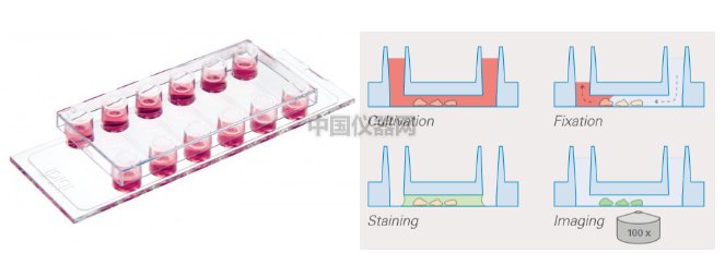 如圖的ibidi通道載玻片,簡單快速完成免疫熒光實驗。