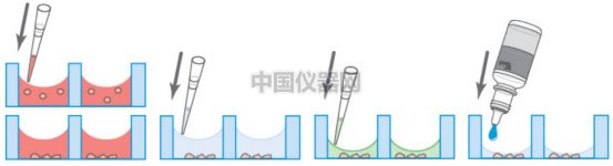 圖二:圖示鋪細胞,固定,清洗,染色步驟。 三、實驗結果